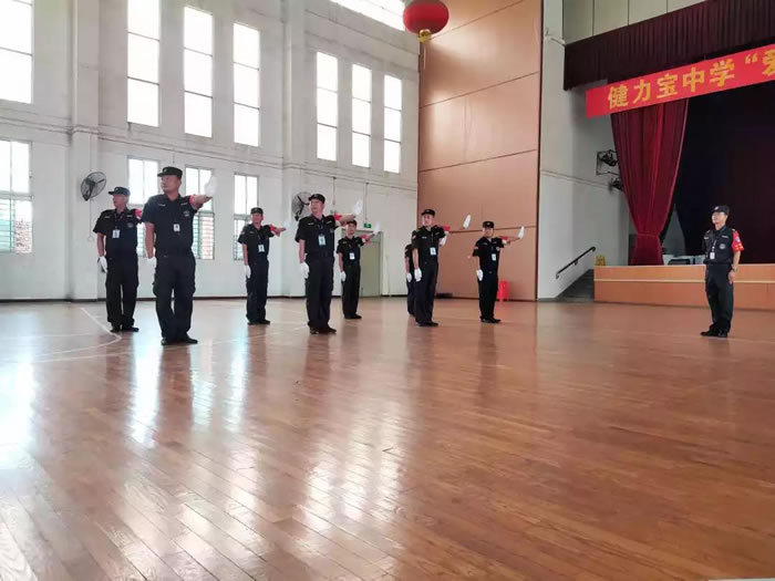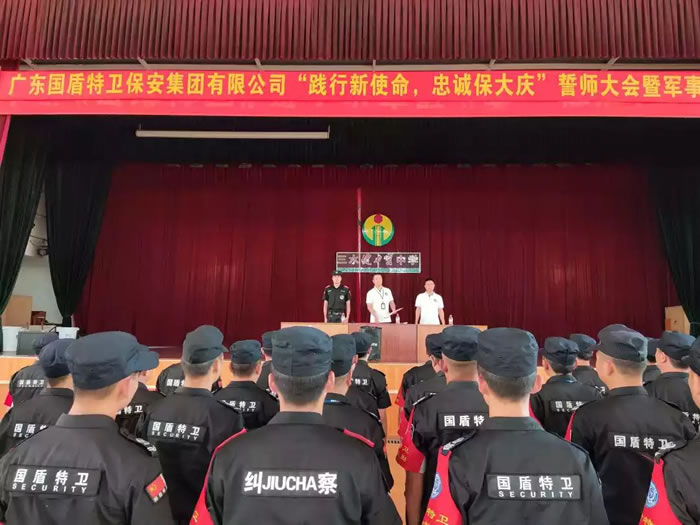 为庆祝中华人民共和国成立七十周年大庆的到来,为人民群众提供更安全的环境,提升我集团全体队员的综合素质,打造一支训练有素、专业技能较高的安保队伍。2019年6月2日下午,在健力宝中学体育馆内,一场主题为“践行新使命,忠诚保大庆”誓师大会暨军事技能比武活动精彩上演。来自集团五个保安部的数十名保安队员参加了比赛,公司管理层出席观摩活动。