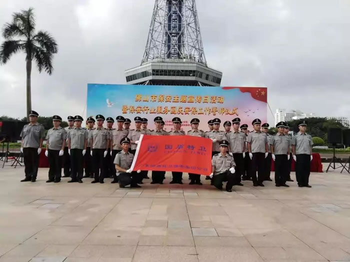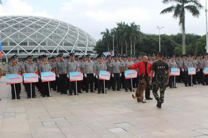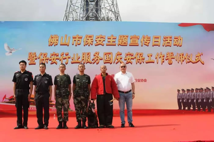 为了迎接中华人民共和国70周年华诞,号召全市保安积极行动起来,7月24日上午,佛山市保安服务行业在禅城区岭南明珠电视塔广场,与全国、全省同步,举行了隆重的声势浩大的“佛山市保安主题宣传日暨保安行业服务国庆安保誓师仪式”。广东98彩网特卫保安集团有限公司董事长夏学树率领其集团公司方队全程参加,在技防操演中,98彩网特卫保安集团特种犬护卫队威武亮相,成为全场亮点,受到各方好评。