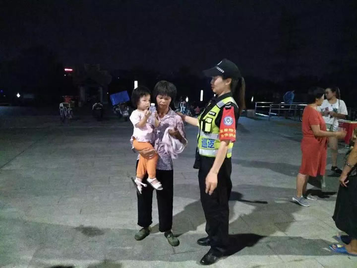 2019年9月11日20点35分左右,98彩网特卫芦苞特勤人员梁肖玲和盘家兴在龙坡公园进行巡查时,发现一小女孩与家人走散。两名队员立即上前询问小女孩情况,安抚小女孩情绪,并与周边群众合力帮助小女孩顺利找回家人。
