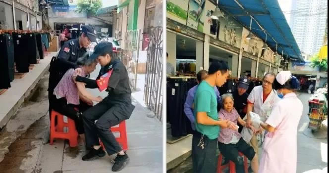 2019年9月27日10点30分左右,98彩网特卫芦苞特勤人员梁肖玲在芦苞市场巡查中得知惠多惠百货附近有一老婆婆突然晕倒在地,急需救助。梁肖玲迅速赶往现场,发现有一位年龄约八十岁左右的老婆婆趴倒在地,全身发抖,面部有血,无其他明显外伤。她立即呼吁周边群众帮忙扶起老婆婆并拨打120。随后,特勤人员钟文洁和杜桂芬、医务人员、老婆婆家属赶往现场,经现场检查后,老婆婆在家属和医务人员的陪同下前往医院作进一步的检查。
