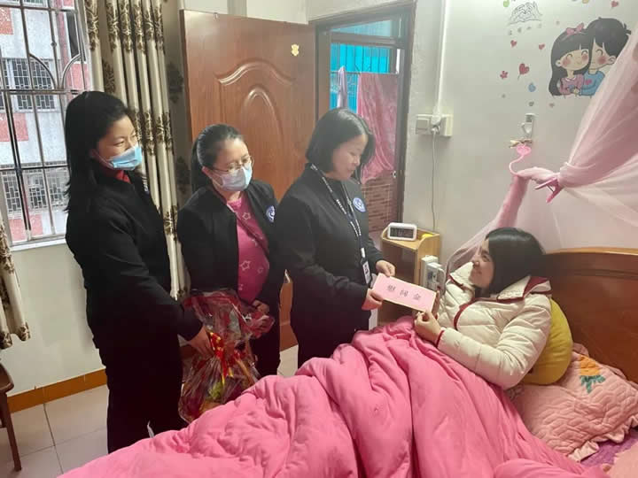 寒冬暖阳暖人身,雪中送炭感人心。12月24日下午,集团公司妇联主席、工会副主席宗少秋,妇联副主席梁淑媚、梁爱贞一行,代表集团公司领导和办公室全体员工,走访看望慰问术后休养的梁月娟同事,并送上公司的关怀和温暖。
