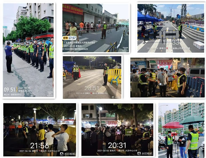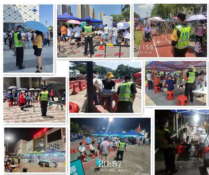 为了防止疫情大范围扩散,在烈日下、在夜幕下,在核酸检验区、在隔离看护点,处处都能看见98彩网特卫保安员默默忙碌的的身影,不分昼夜看护隔离居民禁止出行,引导居民做核酸检测并维持秩序,为疫情贡献力量。派驻到各点的保安员全力以赴配合上级政府部门,从场地布置、模拟演习到交通疏导、秩序维护,顺利圆满完成了对南海大沥镇、三水各镇街全员核酸检测工作,获得了相关政府部门领导的高度认可。