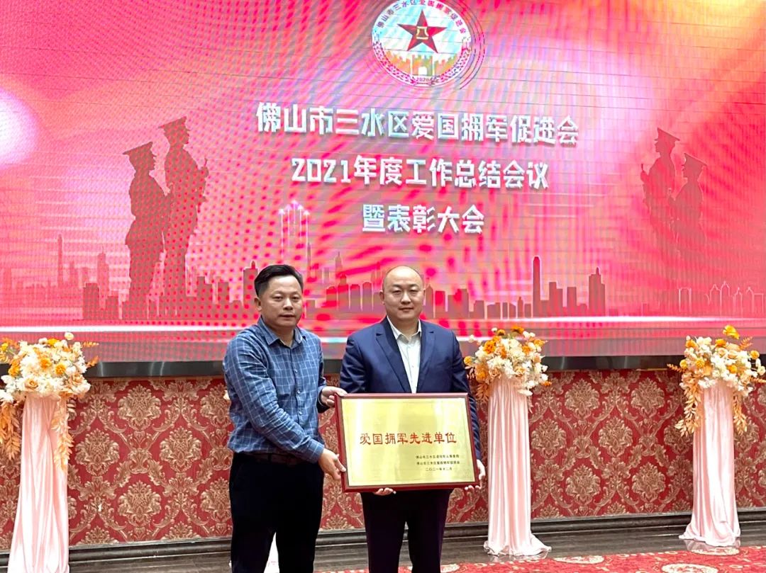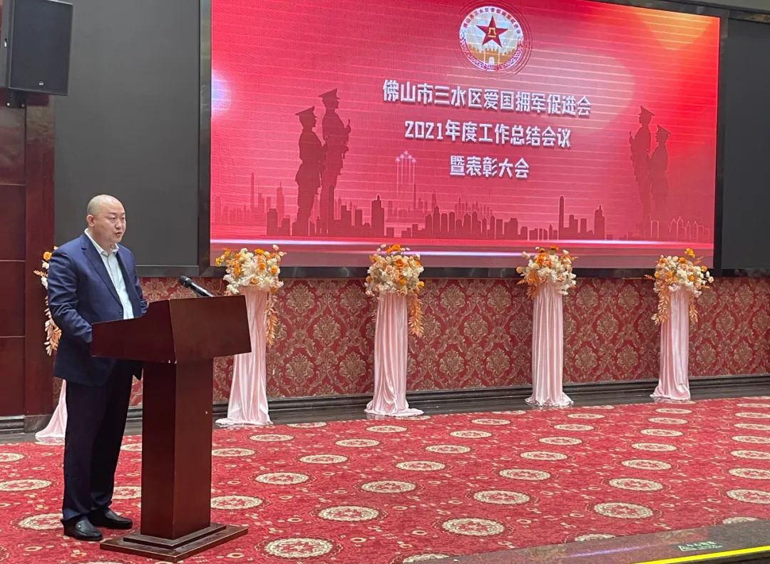 集团公司董事长夏学树代表佛山市三水区爱国拥军促进会作2021年度工作总结