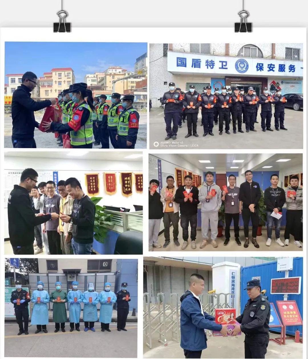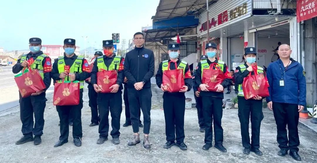 集团公司管理层奔赴各个区域分队驻点,分批次深入基层向队员派发暖心慰问品、防护品以及红包,并叮嘱基层人员做好客户单位服务工作的同时不松懈落实个人防护措施,保证自己的安全与健康。希望他们要坚持模范表率,争当在岗主力军,始终坚持“顾全大局、爱岗敬业”的奉献精神,对留岗保安员,传达公司对他们春节期间坚守岗位、留佛过年的感谢和慰问。
