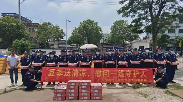 为将集团公司领导对员工的关心关爱送到一线,进一步落实基层一线防暑降温措施,自7月20日起,集团公司党支部和工会组织开展“夏季送清凉,慰问一线守护人”活动,集团公司党支部书记、董事长夏学树高度重视,要求服务管理部各级管理人员落实传达公司的关心关爱精神,以关心一线队员工作和生活为出发点,各护卫点负责人结合夏日实际科学合理安排岗位,叮嘱一线队员加强自我防护,及时补充水分,时刻关注自身身体状况,积极投身公安机关夏季治安打击整治“百日行动”,做好协助维护治安、城市管理创文建设和参与常态化疫情防控工作。