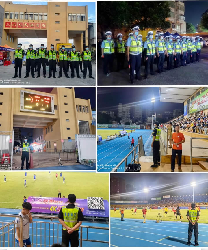 赛事举行期间,由于观众人数较多,安保责任压力大,我司管理人员提前部署谋划,认真研究部署本次安保工作,根据现场勘察情况及主办单位相关工作要求,结合对举办比赛整体的不稳定因素分析及相关安保工作建议,我司共派出100多人次安保人员及交通协管员,协助开展疫情防控、交通管制、维持现场秩序等工作,构成有效的联防联控机制,以良好的纪律作风和严谨负责的专业精神,为三水这一盛事圆满举办保驾护航。