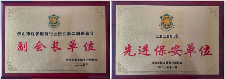 在2020年度创先争优评选活动中,我司被评为“佛山市保安服务行业先进保安单位”、王延周同志获得“佛山市保安服务行业协会优秀保安员”称号;