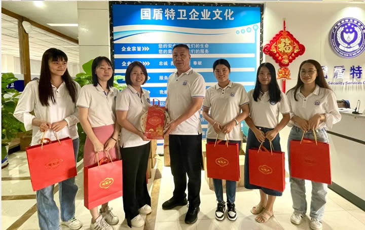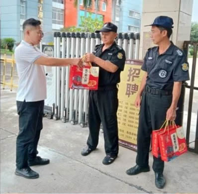 公司客户单位执勤点多、线长、面广,人员比较分散,为落实把慰问送到基层一线,让每位保安员亲身感受公司的关心关爱,集团公司党支部书记、董事长夏学树亲自到基层走访,代表集团公司向节日期间依然坚守在一线岗位的保安员们表示感谢,感谢大家以“一家不圆万家圆”的奉献精神,为回家团圆的人们提供安全、有序的环境;并要求公司各级管理人员深入基层一线慰问的同时,对驻点项目岗点进行安全检查,了解一线执勤队员的工作和生活状况,叮嘱他们做好节日安保工作的同时,注意自身健康情况,合理安排值班备勤。队员们纷纷表示,感谢公司的关怀,对即将到来的“中秋国庆”双节安保工作,将加强巡逻防范工作,全面落实安全防范责任制,用实际行动做到让客户单位领导满意放心,确保节日期间各项工作安全稳定有序进行。