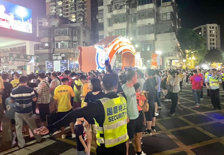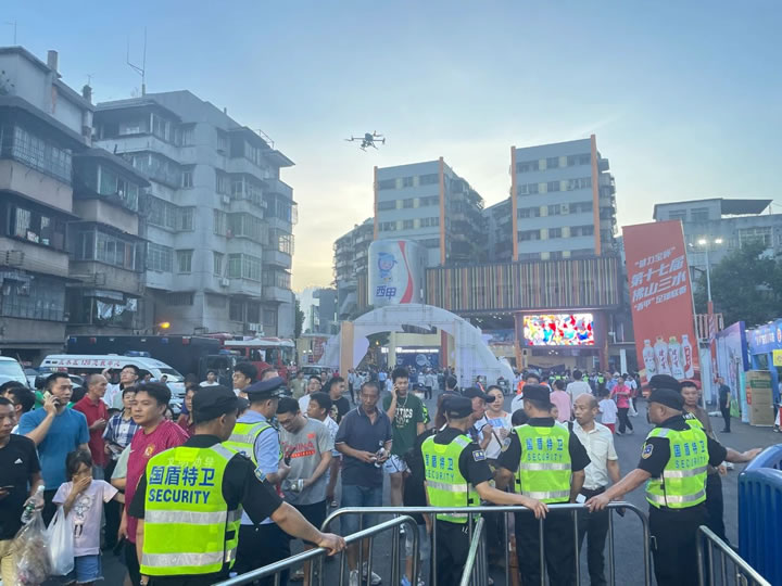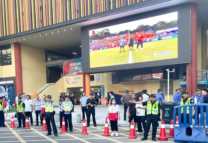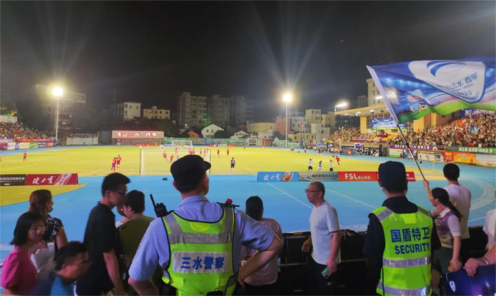 每晚开赛前,我司安保人员协助三水公安交警对活动现场周边道路实施临时交通管制,摆设交通管制牌、水马和铁马,协助交警引导观赛群众到指定停车场停放车辆,确保赛事交通安全和群众出行顺畅。