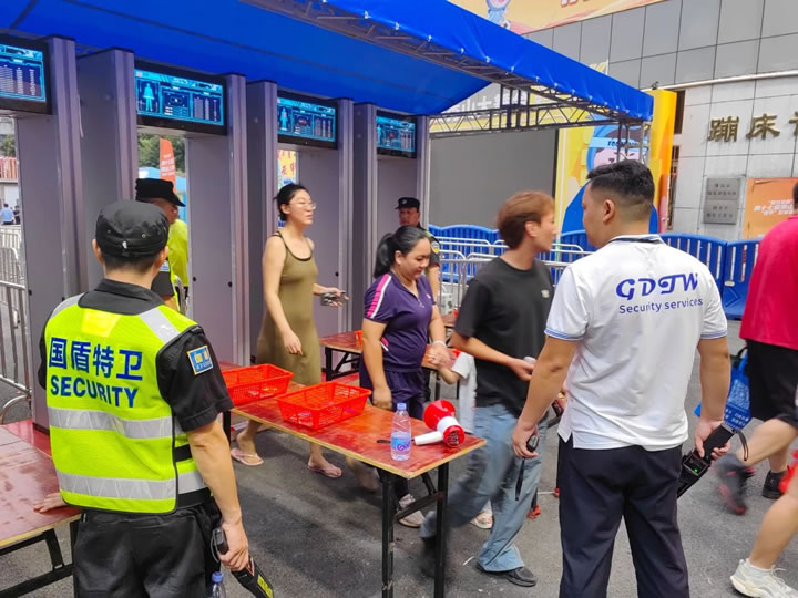 每晚开赛前,我司安保人员协助公安民警在安检口、入场口开展安全检查和服务保障。引导运动员、嘉宾、新闻媒体记者及观众安全有序进入赛场;赛场内,协助公安民警细致开展排爆安全检查、消防安全检查,及时发现和排除安全风险隐患。